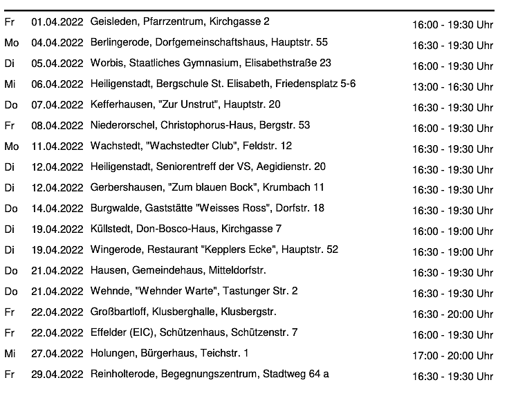 Blutspendetermine im April