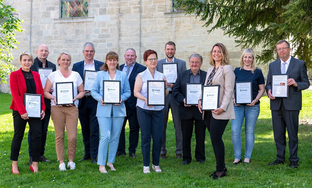 Gemeinsam machen sich das Eichsfeld Klinikum mit der Emmaus Palliativstation, die Tochtergesellschaft EK Pflege mit den Emmaus Hospiz- und Palliativdiensten sowie die Gesellschafter beider Unternehmen für das Charta-Projekt stark und bekräftigen mit ihrer Unterschrift, die Ziele der Charta aktiv zu unterstützen und die Behandlung und Betreuung schwerstkranker und sterbender Menschen stetig zu verbessern. In einem gemeinsamen Termin wurden in der vergangenen Woche nun dazu die Urkunden der Charta an die Unterstützenden übergeben.