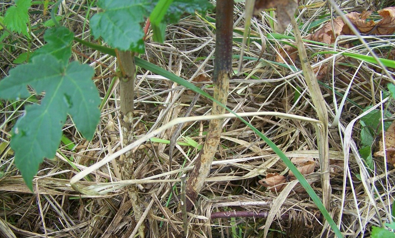 Forstkulturen sind vielfältigen Gefahren ausgesetzt: Hier haben Mäuse dem jungen Ahorn die schützende Rinde rundum abgefressen, das Bäumchen hat keine Überlebenschance (Foto: Horst Sproßmann)