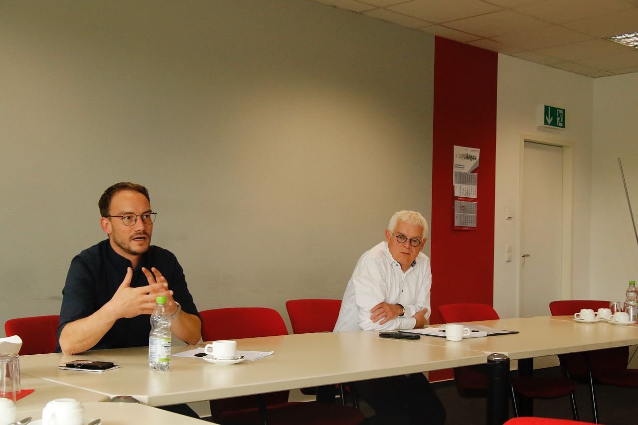 IG-Metall Vertreter Alexander Scharff und Feuer-Geschäftsführer Bernd Gulden: in der deutschen Gewerkschaftskultur kann man konstruktiv zusammen arbeiten (Foto: agl)