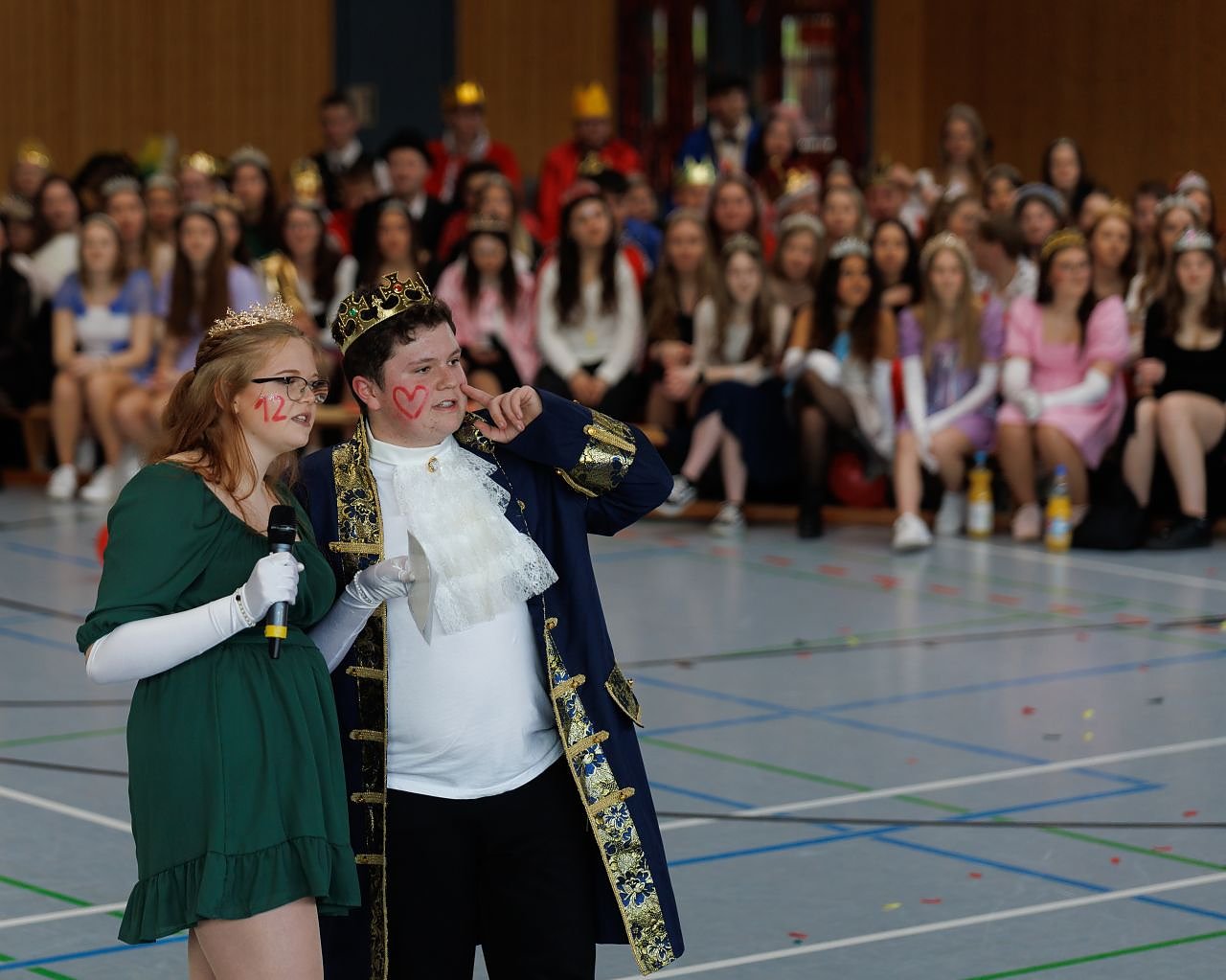 Unter dem Motto Der Adel dankt ab eröffnete Schülersprecher Tim Diegmann unter tosendem Applaus der gesamten Schulgemeinschaft die Veranstaltung in der Ohmberghalle.