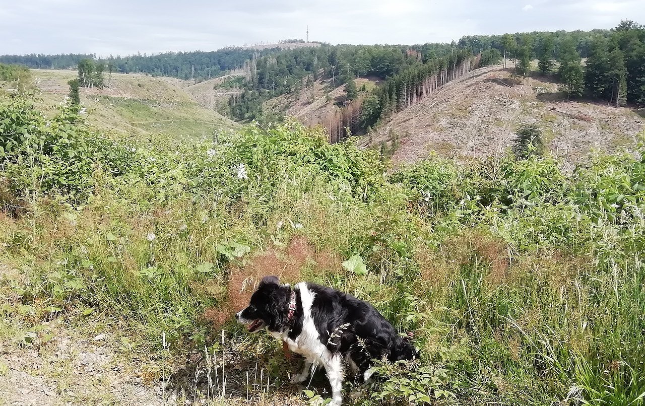 Sophienhof mit Blick auf den Aussichtsturm in SA. Bei fast optimalen Wanderwetter. Sonne, leichtem Wind und um die 20 Grad. (Foto: W.Jörgens)