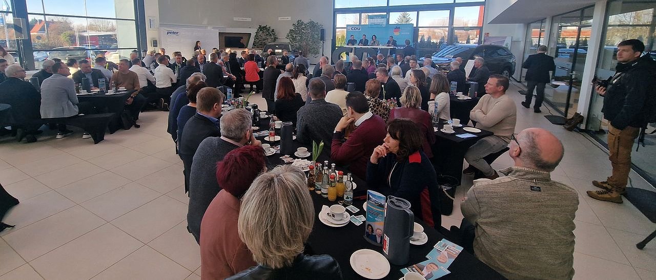 Ein Rentner aus dem Kyffhäuserkreis mahnte an, dass die CDU zu ihren Wahlversprechen auch nach dem 23. Februar stehe. 2 plus 2 müsse auch nach der Wahl als Ergebnis 4 stehen, selbst wenn es die ungeliebte Opposition bestätige. Er habe seit 1990 immer Gelb oder Schwarz gewählt, jetzt liebäugle er mit Blau, so wie es bei seiner Community seit vielen Monaten der Fall sei. Im Klartext: keine Angst vor einer Zusammenarbeit mit der AfD, wenn es um vernünftige Themen gehe. Er erhielt – ohne exakte Messung – den stärksten Beifall.