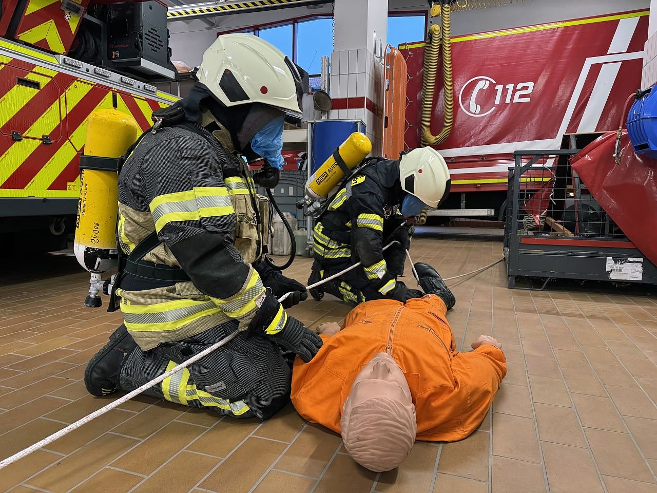 Im Anschluss galt es, eine 85 Kilogramm schwere Übungspuppe über eine längere Strecke zu ziehen. Alles in allem Belastungen, die so auch im Einsatz vorkommen können.