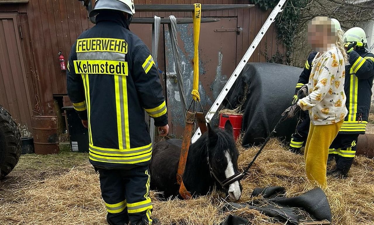 Sowohl das Pferd als auch die Besitzerin kamen mit dem Schrecken davon. Für die rund 20 Einsatzkräfte der Feuerwehr war der Einsatz nach etwa einer Stunde beendet.