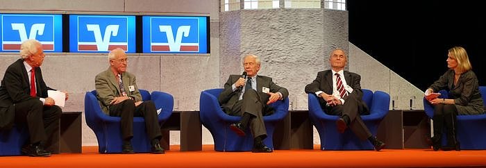 Klaus von Dohnanyi, Prof. Friedhelm Hengsbach und Prof. Otmar Issing diskutierten mit den ZDF-Moderatoren Marietta Slomka und Udo van Kampen über die Möglichkeiten der Meisterung der aktuellen Finanzkrise. Hat die Marktwirtschaft eine Legitimationskrise? Wie weit darf der Staat eingreifen, unterstützen? So unterschiedlich die Antworten ausfielen, so einhellig war der Tenor, dass diese Krise eine Herausforderung an alle Akteure sei, sie aber auch die Chance in sich berge, Fehler zu korrigieren und der Wirtschaft wie dem einzelnen Bürger ein Teil des Vertrauens zurückzugeben, der in den vergangenen Wochen verloren gegangen sei.