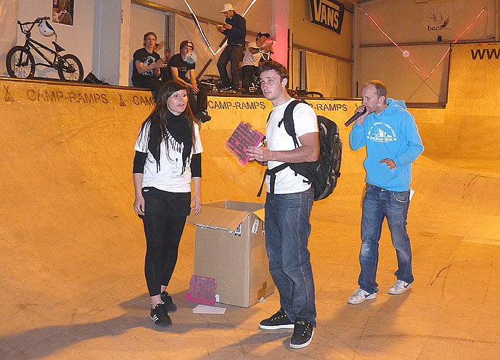 Der amtierende Deutsche Meister (und Ex-Weltmeister von 2004) Tobias Wicke war natürlich der erklärte Favorit dieser Veranstaltung für BMX-Fahrer. Aber selbst spektakuläre Tricks, wie im Video zusehen, reichten nicht um hier gewinnen zu können. Als sein letzter Jam gar mit einem Sturz und ein paar blauen Flecken endete, war der Weg für einen anderen Gewinner frei.