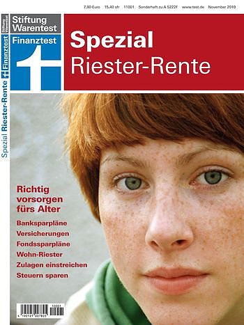 Das Finanztest Spezial Riester Rente hat 114 Seiten und ist ab dem 20. November 2010 zum Preis von 7,80 Euro im Handel erhältlich oder kann online bestellt werden unter www.test.de/shop