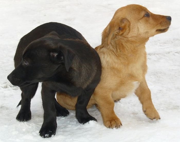 An der Strasse zwischen Mörbach und Wipperdorf sind diese beiden acht Wochen alten Welpen im Straßengraben sitzend aufgefunden worden. Sie müssen erst kurz bevor man sie fand dort ausgesetzt worden sein, denn sie waren noch warm und durch den Schnee noch nicht durchnässt.