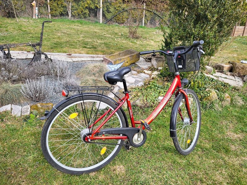 An der Sattelstange ist ein Schnellspanner, so kann man die Höhe des Sattels schneller ändern oder anpassen.