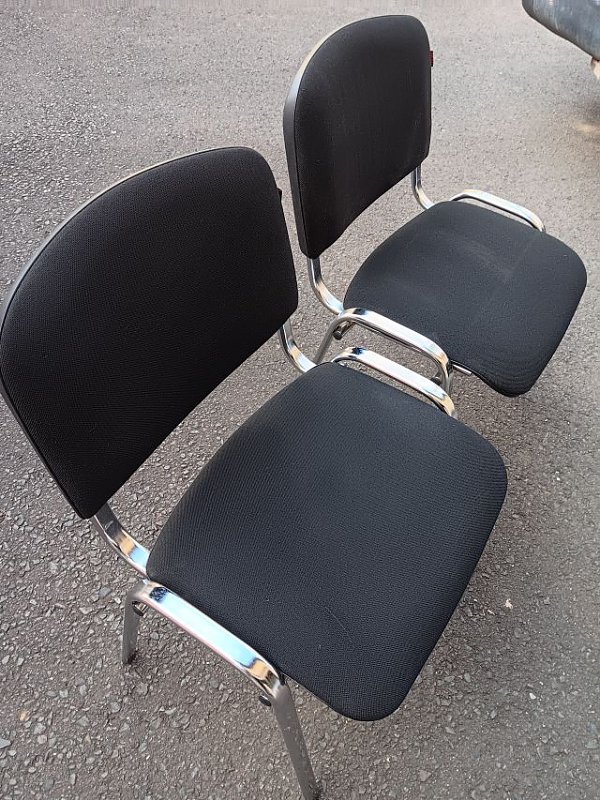 Verkaufe 2 Stück Bürostapelstühle Sugma VC 01 , verchromte Füße ,schwarzes Textilpolster , gebraucht , aber sehr gut erhalten pro Stück 25 € , beide zusammen 40 €