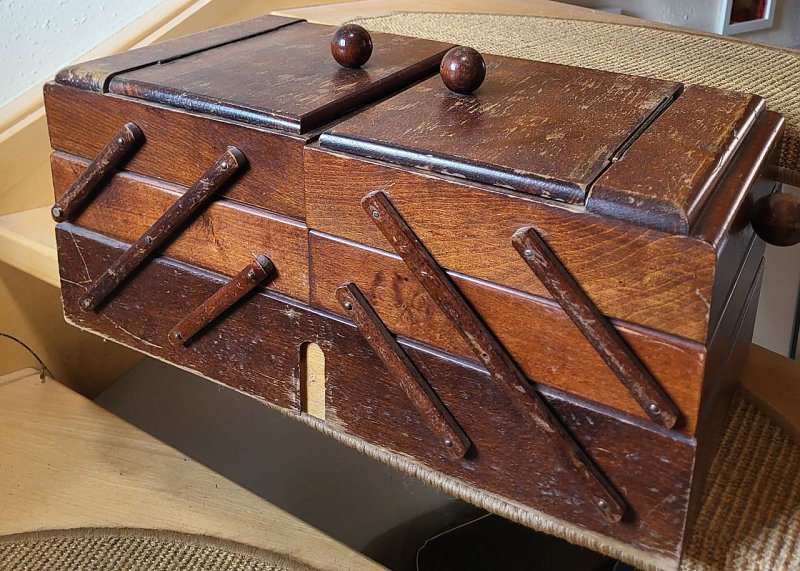 Verschenke diesen Nähkasten aus Holz, es fehlt der Griff.