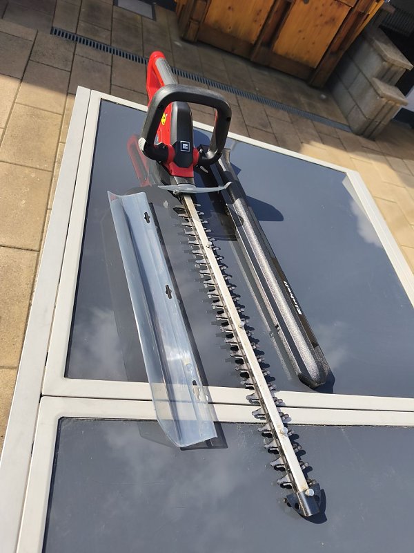 Messer aus laser- und diamantgeschliffenem Stahl,drehbarer Griff , Schnittgutsammler ,ergonomischer ,schmaler Frontgriff mit Micro - Schalter. Schnittlänge 55 cm ,Zahnabstand 22 mm.