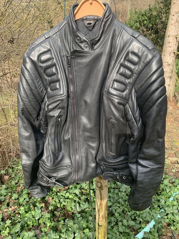 Biete: Gut erhaltene Motorrad-Lederkombi Gr.52/54