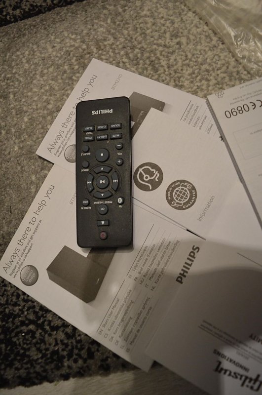 Philips BTM2310/12 Mini Stereoanlage mit digitaler Soundkontrolle (15W RMS, MP3, CD, USB), schwarz, Netzkabel, UKWAntenne, Benutzerhandbuch, Fernbedienung: 21-Tasten-Fernbedienung
