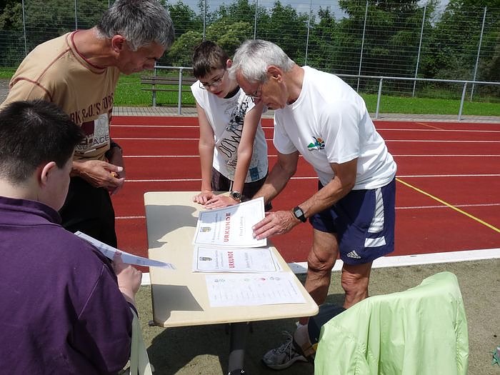 Im Vordergrund stand weniger, wer welchee Platz belegt wurde, sondern die Teilnahme und die Freude standen an erste Stelle. Für jeden Zeilnehmer gab es pro teilgenommener Disziplin einen Stempel auf der Teilnehmerurkunde, die jeder Sportler erhielt. Zum Abschluss des Sportfestes gab es nochmals Plaketten.
