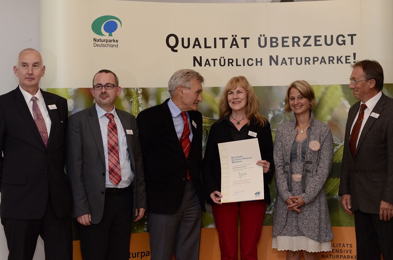 Autor: enDer Naturpark Eichsfeld-Hainich-Werratal wurde am 27. September 2012 im Rahmen der Qualitätsoffensive Naturparke auf der Eröffnungsveranstaltung des Deutschen Naturpark-Tages 2012 im Naturpark Sternberger Seenland zum zweiten Mal als Qualitäts-Naturpark ausgezeichnet.
