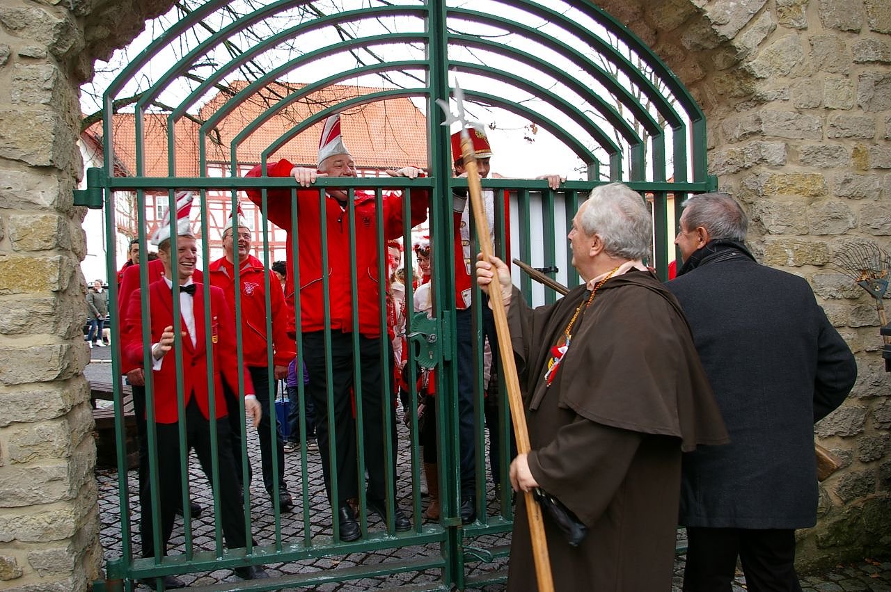 Autor: enOrtsbügermeister Franz Jaworski und Bruder Bernhard (alias Bernhard Berkhahn) hatten sich im Gülden Creutz hinter dem verschlossenen Eisentor positioniert, bewaffnet mit einem Vorderlader und einer Lanze. Die Narren sollten kein leichtes Spiel mit ihnen haben und ganz so einfach wollten sich die beiden nicht ergeben. Am Eisentor zu rütteln machte keinen Sinn, das ließ nicht nach.