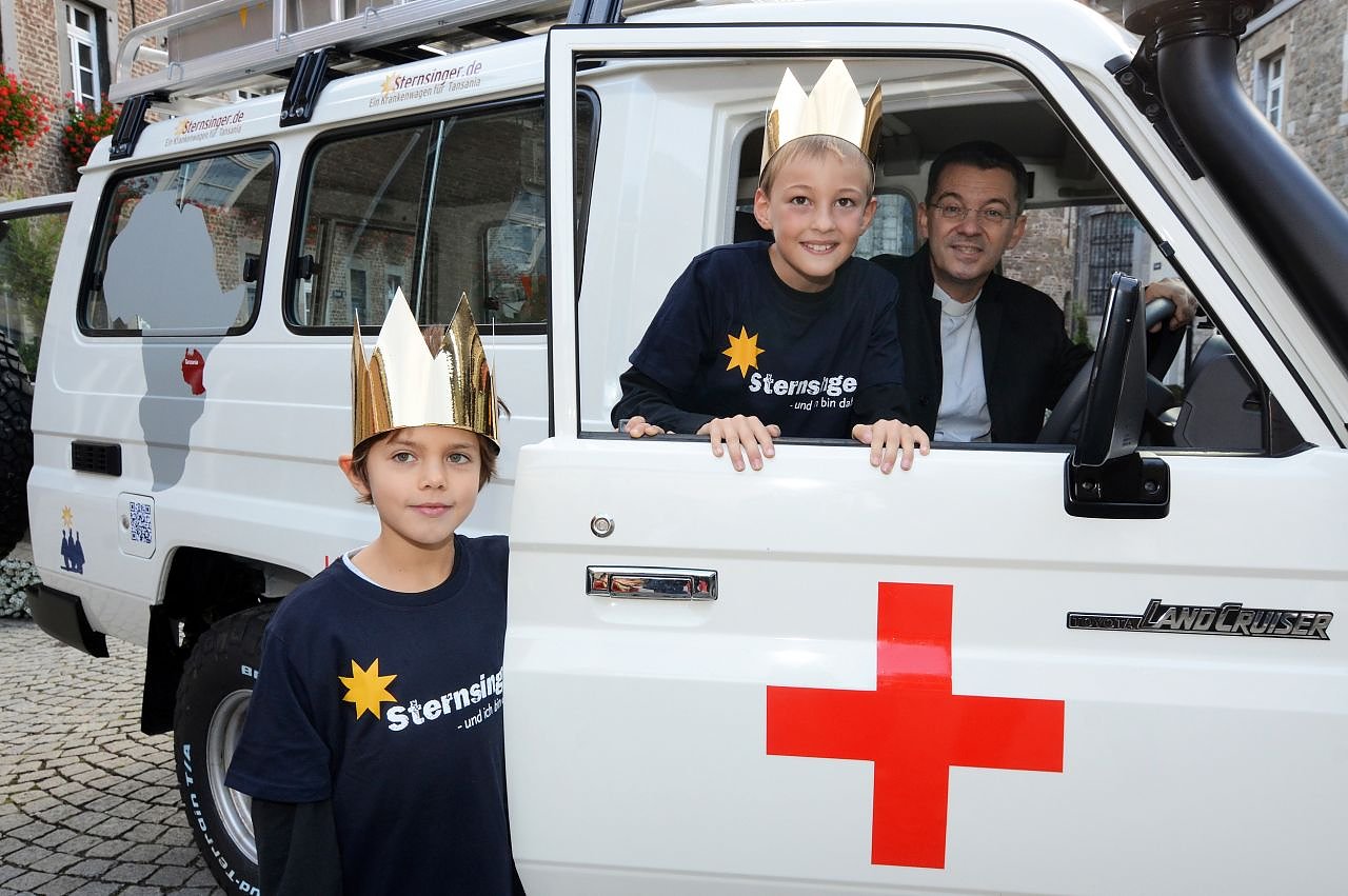 13 Personen finden in dem großen, weißen Fahrzeug Platz, und die rote Warnleuchte auf dem Dach erinnert sofort an einen Rettungswagen. Unter dem Motto "Ein Krankenwagen für Tansania" tourt seit dem 15. September und noch bis zum 12. Januar ein Geländewagen durch Deutschland, der im Vorfeld und während der Aktion Dreikönigssingen 2013 für die Anliegen der Sternsinger wirbt.