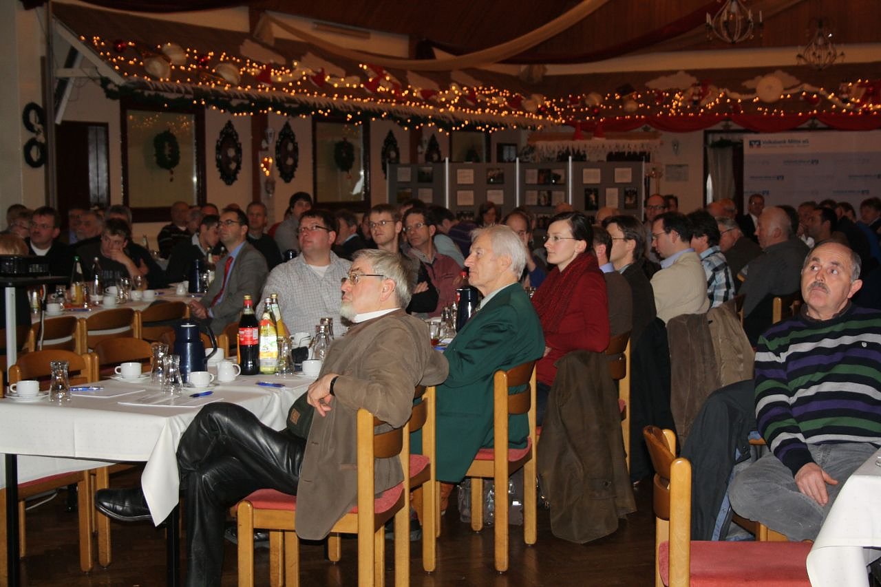 Horst Hermannsen, Redakteur bei der Agrarzeitung und Mitarbeiter des Bayerischen Rundfunks, referierte zum Thema Landwirtschaft im Zangengriff von Markt und Politik. Ein Thema, das die Landwirte in der Zukunft vor große Herausforderungen stellt. Preise, Gesetze und Überleben des Betriebes müssen in Einklang gebracht werden. Hermannsen stellte sein Thema kurzweilig und praktisch vor. Sein Blick in die Zukunft zu Klimaveränderung, Verknappung der landwirt-schaftlichen Fläche, Gentechnik und Energiewende war sachkundig, aber auch kritisch und regte zum Nachdenken an.