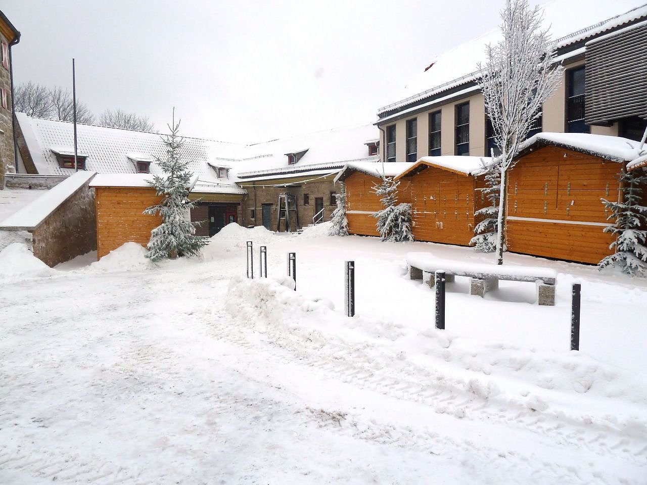 Autor: enSo sieht es derzeit im Hof der Burg aus. Am vergangenen Sonntag stürmte der Schnee hart und gefroren in die Hütten und nahm sich, was nicht niet- und nagelfest war. Foto: Martina Lagemann
