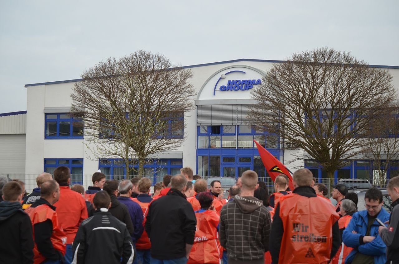 Bei den Auftaktbetrieben MAGNA in Heiligenstadt und NORMA in Gerbershausen, legten die Metallerinnen und Metaller die Arbeit nieder. Insgesamt beteiligten sich heute Morgen 160 Warnstreikende in beiden Betrieben.