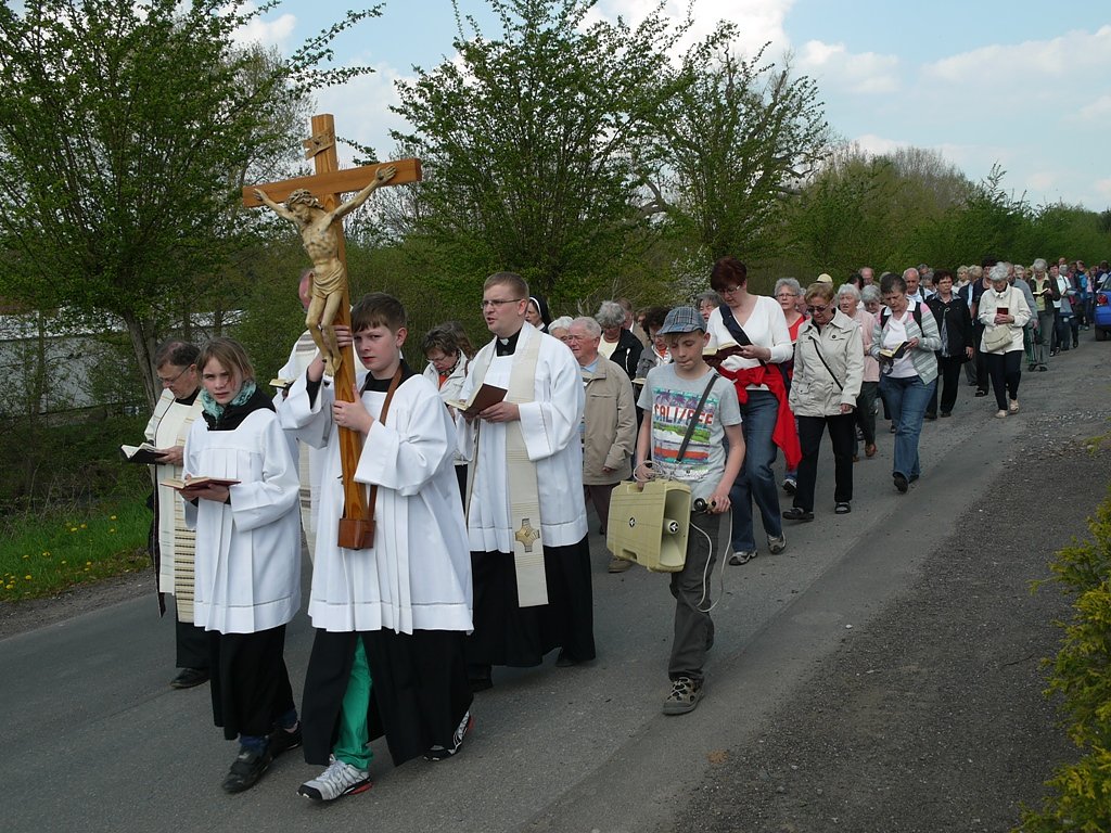 An diesen drei Tagen vor Christi Himmelfahrt wurde in langen Bittprozessionen von Ort zu Ort um eine gute Ernte gebetet. Erhalten haben sich in vielen katholischen Gemeinden bis heute kleinere Flurprozessionen. Vom Friedhof in Heiligenstadt zog die Prozession heute in Richtung Alte Burg. Dort wurde an der Alten-Burg-Kapelle noch eine Bittmesse gefeiert.