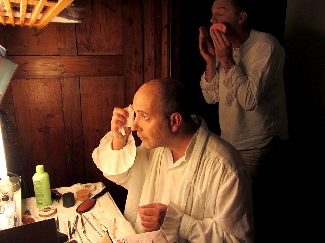Schminken im Museum: Benedikt Schörnig und Günter Schoßböck bereiten sich im Kontor vor (Foto: Eva Maria Wiegand)