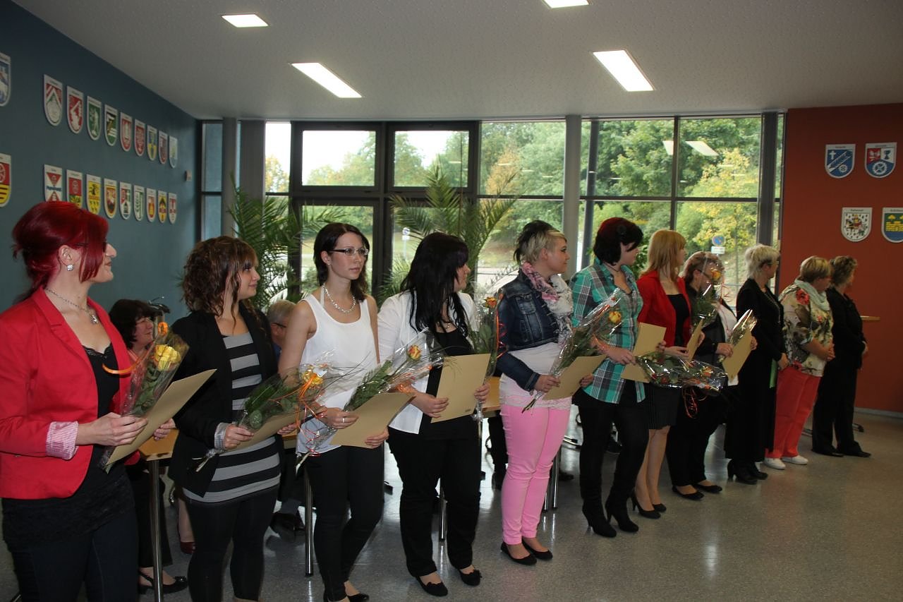 Ein feierlicher Augenblick für die Gesellinnen und Gesellen, die nach dreijähriger Ausbildung in den Berufen Tischler, Maler Maurer, Friseure, Raumausstatter, Fleischer und Bäcker nun in ihren Berufen arbeiten.