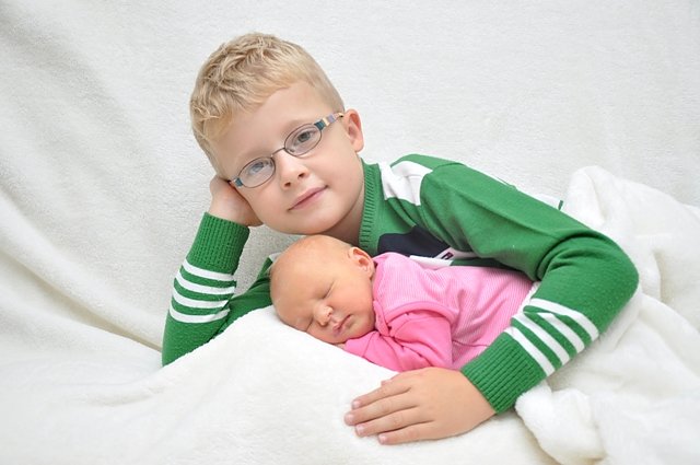 Tabea Kunze war das 500. Baby, das in diesem Jahr im Eichsfeld Klinikum geboren wurde. Bruder Marian ist stolz auf sein Schwesterchen. Foto: Büchner