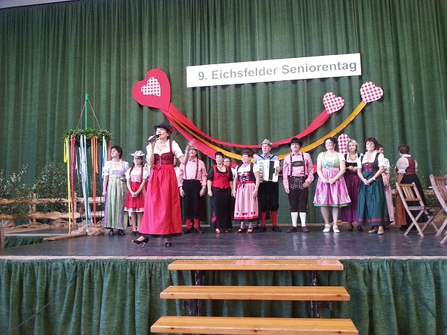Sie begrüßte die ca. 700 Besucher zum 9. Eichsfelder Seniorentag und animierte die vielen Gäste ordentlich mitzufeiern und verkündeter scherzhaft, dass auch auf den Tischen getanzt werden darf.