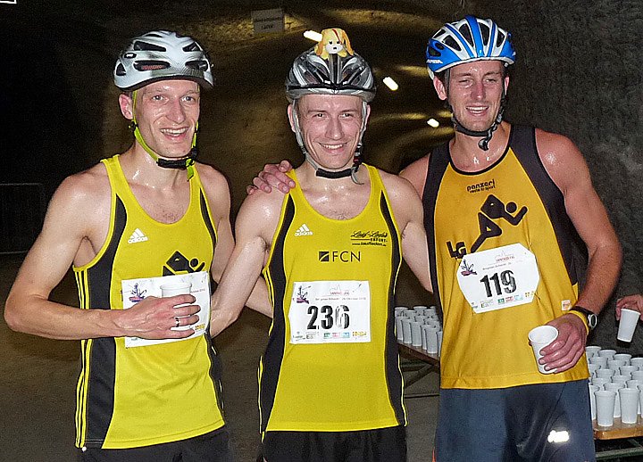 Einen gut sitzenden Helm hatten diese drei Läufer, denn es waren die drei, die als erste Läufer das Ziel erreichten.