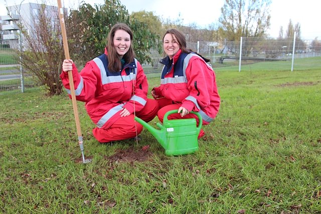 Wir wollen zeigen, wie einfach es ist, etwas für unsere Umwelt zu tun und uns aktiv für den Umweltschutz einzusetzen, wie es unsere Aufgabe im Jugendrotkreuz ist, erklärt Jennifer Scholle. Mit wenigen Handgriffen einen Spaten wurden die Goldahorne gepflanzt und angegossen, damit sie auch eine gute Grundlage zum Wachsen haben.