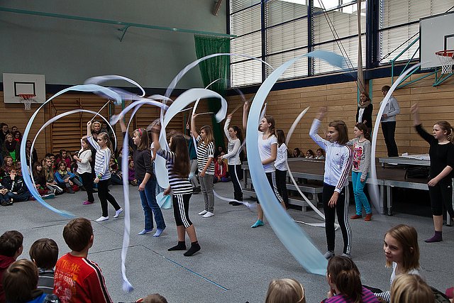 Am Freitag, 15. November, frühstückten um 9.00 Uhr die Klassen gemeinsam in ihren Räumen, bevor ab 10.00 Uhr verschiedene Workshops ihre Ergebnisse in der Turnhalle vor der gesamten Schulgemeinschaft präsentierten. Auch an diesem Tag gab es ein vielfältiges Kuchenangebot und der Basar war ebenfalls bis 13 Uhr geöffnet. Nach dem Aufräumen allseits machten sich dann mittags alle zufrieden auf den Heimweg nach zwei erfüllten Tagen und mit der Erfahrung reicher, wie es ist, die Schule mal ganz anders zu erleben als an den Unterrichtstagen.