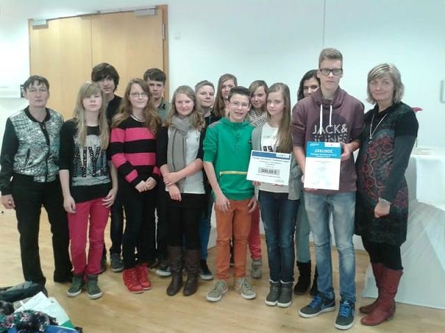Unter dem Motto Wann, wenn nicht jetzt? Der demografische Wandel bist du! hatten sich die Schüler mit ihrem Projekt Miteinander leben und glücklich sein an diesem Wettbewerb beteiligt. Ging es ursprünglich darum, ob Menschen mit Behinderungen ihr Leben am Wohnort oder unterwegs selbstbestimmt und gleichberechtigt nach ihren individuellen Interessen und Fähigkeiten gestalten können, so setzten sie in den weiteren Überlegungen den Fokus auf die älteren Menschen – auch sie sind von Beeinträchtigungen betroffen: in ihrer Mobilität, in ihrem Hör- und Sehvermögen und es fehlen mitunter soziale Kontakte. Gemeinsam überlegten sie, wie unsere Stadt in Zukunft aussehen kann oder muss, um den Besonderheiten der älteren Generation Rechnung zu tragen.