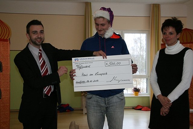 Eingeladen hierzu war auch Marcel Kalmring, Kundenservice des in der Leinestadt ansässigen Unternehmens Engel Industrieservice GmbH. Im Gegensatz zum hoffnungslos überforderten Weihnachtspostboten hatte er für die Bewohner nicht nur einen großen Sack voller Süßigkeiten mitgebracht, sondern auch einen Scheck über 500 Euro.