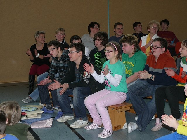 In der Turnhalle warteten gespannt schon die Mädchen und Jungen der Tabaluga-Schule in Worbis. Es waren an jenem Dienstag gleich mehrere Höhepunkte. Bevor die erste Überraschung präsentiert wurde, übergab Schulleiterin Gabriele Müller mit den herzlichsten Glückwünschen eine Urkunde für den zweiten Platz im Basketball.