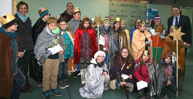 Autor: enDeshalb unterstütze ich erneut gerne die Aktion Dreikönigssingen, die dieses Jahr vor allem Zufluchtsorte für Flüchtlingskinder schaffen will, sagte heute der Minister für Bau, Landesentwicklung und Verkehr, Christian Carius, beim Empfang der Sternsinger im Erfurter Ministerium. Carius und Staatssekretärin Inge Klaan empfingen gemeinsam mit den Mitarbeitern in den Diensträumen rund 50 Sternsinger, die das Ministeriumsgebäude und die Büros zum Dreikönigstag segneten.