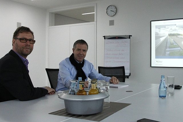 Adams nutzte die Gelegenheit um mit dem Unternehmer Apitz über die aktuellen Herausforderungen der Energiewende zu diskutieren. Die technische Umsetzbarkeit der Energiewende ist bewiesen. Nun muss der rechtliche und gesellschaftliche Rahmen weiterentwickelt werden, wir brauchen Entscheidungen sagt Adams auch im Hinblick auf die Diskussionen zum zukünftigen Energiemarkt-Design und zur EEG-Förderung.