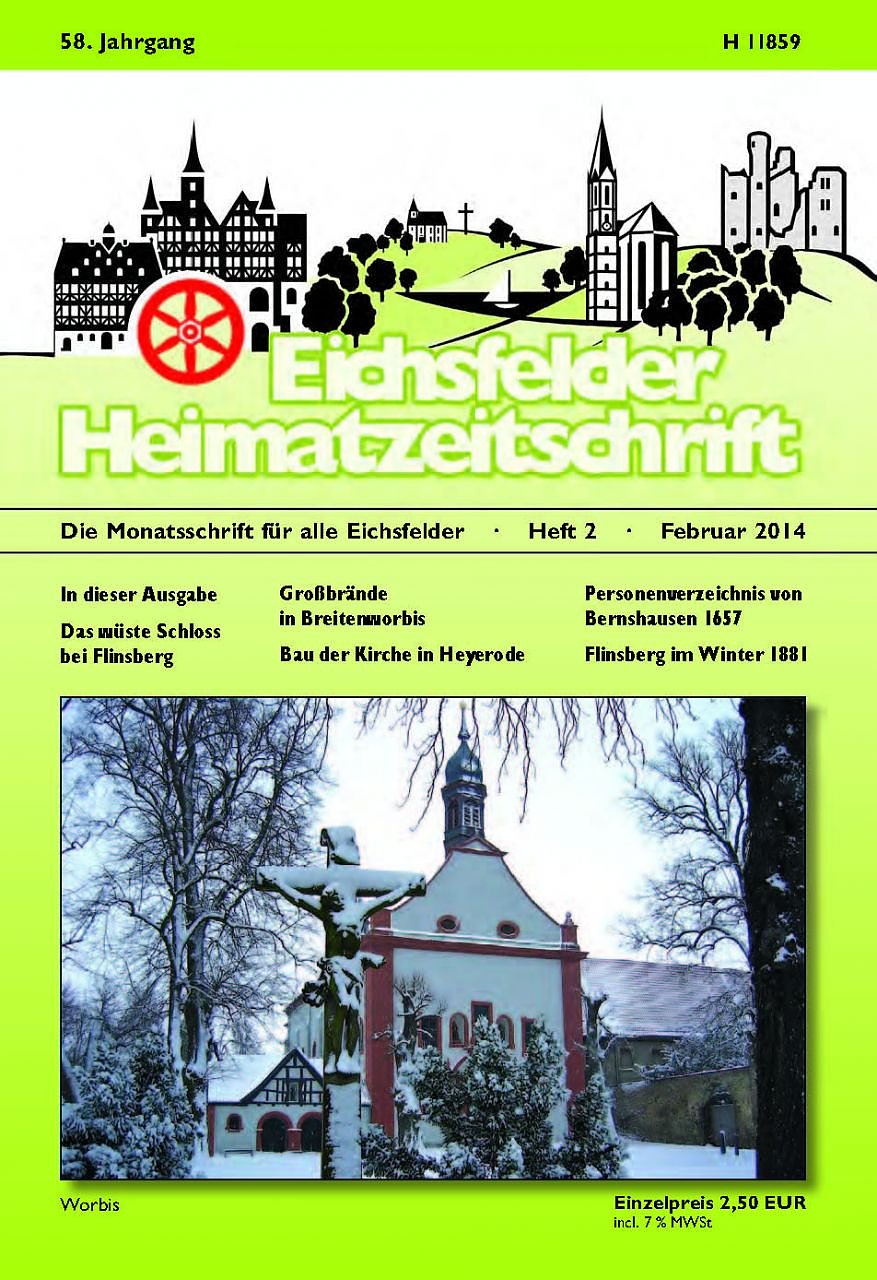 Großbrände in Breitenworbis hat Manfred Winter seinen entsprechenden Aufsatz überschrieben. Dr. Ulrich Hussong vermittelt einen zeitgenössischen Text zum Neubau der katholischen Kirche 1895 bis 1897 in Heyerode. Ein Personenverzeichnis von Bernshausen im Jahre 1657 stellt Bernd H. Siebert vor. Über Flinsberg im Winter 1881 berichtet Hiltrud Leineweber.