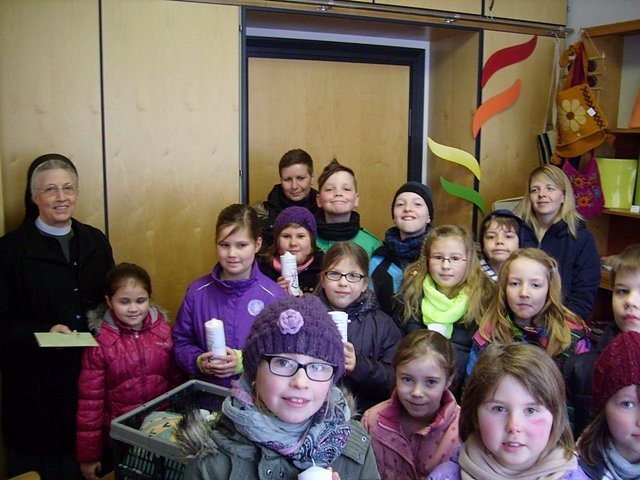 Sr. Seraphika, gebürtig aus Heuthen, zeigte den Kindern die Kirche, den Eine Welt Laden und die Ausgrabungen im Keller des Klosters. Die Kinder überreichten zum Dank wieder ihre selbst gestalteten Gebetskerzen und verbanden damit die Bitte, das die Schwestern für je ein Erstkommunionkind und einen Firmbewerber beten. Da einige Kinder noch nie in der St. Martins Kirche in Flinsberg waren, ging es über Flinsberg dann wieder zurück nach Geisleden, wo schon ein leckeres Mittagessen auf die Kinder wartete!