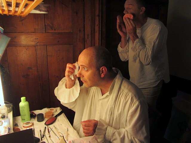 Bendikt Schörnig führt Regie und spielt selbst mit - hier schminkt er sich für seinen Auftritt im letzten Jahr (Foto:Eva Wiegand)
