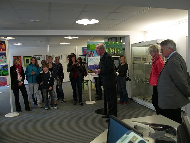 Gerd Reinhardt verwies darauf, dass es die nunmehr 138. Ausstellung im Wasserturm sei und die ausgestellten Bilder, Zeichnungen, gestalterische Arbeiten dem Betrachter Staunen abringen. Es sei sehr beachtlich, was die Schüler hier erarbeitet haben.
