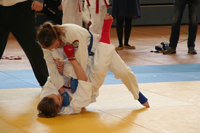Jasmin Bassermann (oben, rot) mit Würgetechnik gegen Jana Martini