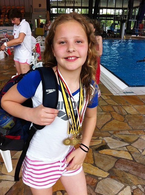 Den besten Tag erwischte Emelie. Sie siegte gleich auf 3 Strecken und ergatterte dazu noch eine Bronzene. Mit ihren Zeiten über 100 m Brust (1:44,54 min) und 50m Brust (47,44 s) übernimmt sie die Spitzenposition im Freistaat. Ihre Zeiten über 50 m Delphin (45,30 s) und 50 m Freistil (38,24 s) bedeuten in der Thüringer Rangliste jeweils Platz 3!