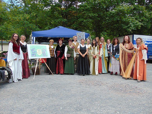 Lieder wie ,,Gamla moder jord, ,,Sto mi e mio, ,,Mairi’s wedding, ,,Roter Mond,, Wan si dahs” und ,,Es führt über den Main” waren nicht nur ein Ohrenschmaus, den Zuschauern bot sich ein farbenprächtiges Gesamtbild, da Musiker und Sänger in fantasievollen mittelalterlichen Gewändern erschienen waren. Harfe, Gitarre, Querflöte, Klarinette, Trommel und Schellen begleiteten den Gesang.