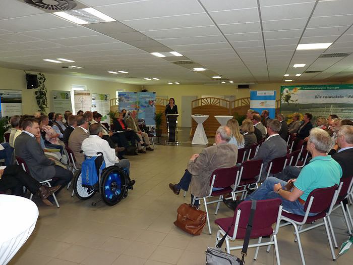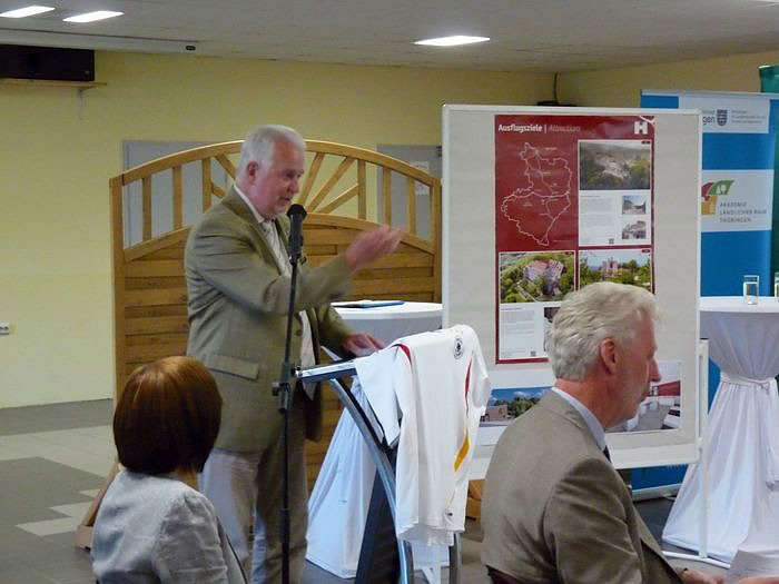 Ministerialdirigent Prof. Dr. Karl-Friedrich Thöne, Leiter Abteilung Ländlicher Raum und Forsten des Thüringer Ministerium für Landwirtschaft, Forsten, Umwelt und Naturschutz verwies darauf, dass es voraussichtlich gelingen werde, für den Zeitraum bis 2020 die LEADER Förderung von 43 Millionen Euro auf 55 Millionen Euro zu steigern. Dr. Thöhe: Wir werden den Wandel positiv gestalten und werden nicht in den Demografie-Blues verfallen." Mit Blick auf den Gastgeber lobte er die Ergebnisse des Ferienparks