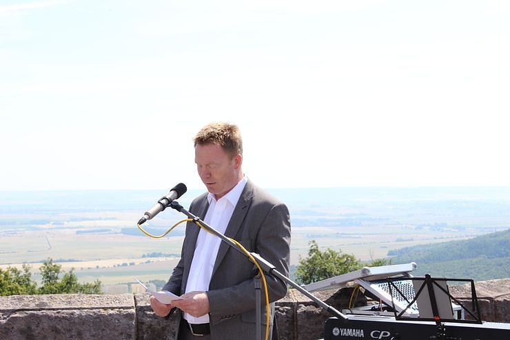 Kultusminister Christoph Matschie und Landrätin Antje Hochwind (beide SPD) haben heute das Denkmal feierlich übergeben. Nicht ganz hat man den Termin 18. Juni für die Übergabe geschafft, denn das Denkmal war erstmals am 18. Juni 1896 übergeben worden. Da seit Anfang des Jahres mit der Kurgesellschaft Bad Frankenhausen ein neuer Betreiber gefunden wurde, sollte es am Kyffhäuser wieder "bergauf" gehen. Erste Events im Jahr geben Anlass zu Optimismus, so Bürgermeister Matthias Strejc (SPD), der hier den Betreiber, die Kurgesellschaft Bad Frankenhausen vertrat. In den letzten drei Monaten waren rund 50.000 zahlende Besucher am Kyffhäuserdenkmal, eine Verdoppelung gegenüber der Bauphase im vorigen Jahr. Und man hat noch viel vor im Hinblick auf das Marketing.