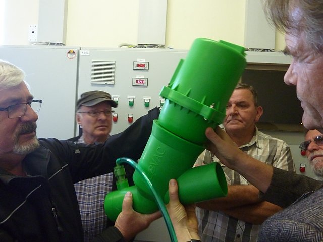 Die an der Veranstaltung teilnehmenden Bürger aus Stöckey konnten genau sehen, wann von ihrem Grundstück Abwasser abgesaugt worden war.Das abgesaugte Abwasser wird anschließend wie in einer normalen Kläranlage weiterbehandelt.