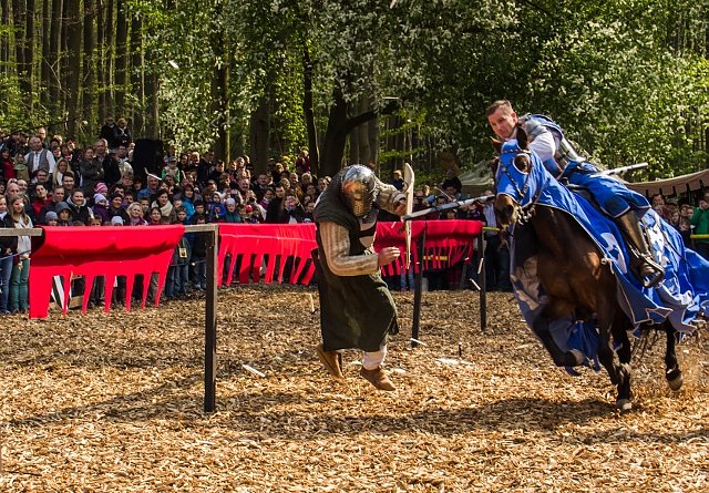 Gekämpft wird mit authentischen Waffen, in bester Ausrüstung und auf edlen Rössern. Händler und Markttreibende feilschen um ihre Waren und viele Leckerrein füllen Euch den Wanst. Und natürlich ist das riesige Maislabyrinth noch geöffnet (getrennter Eintritt).